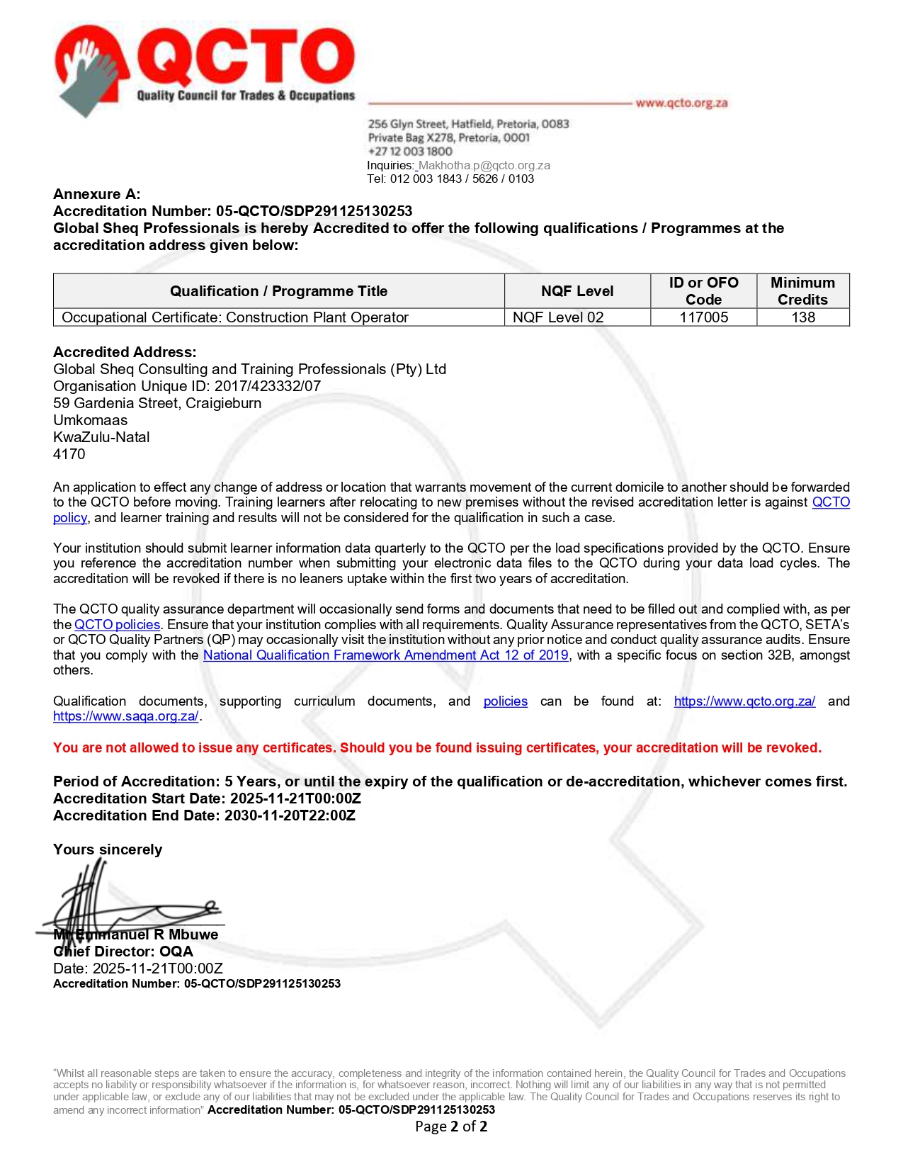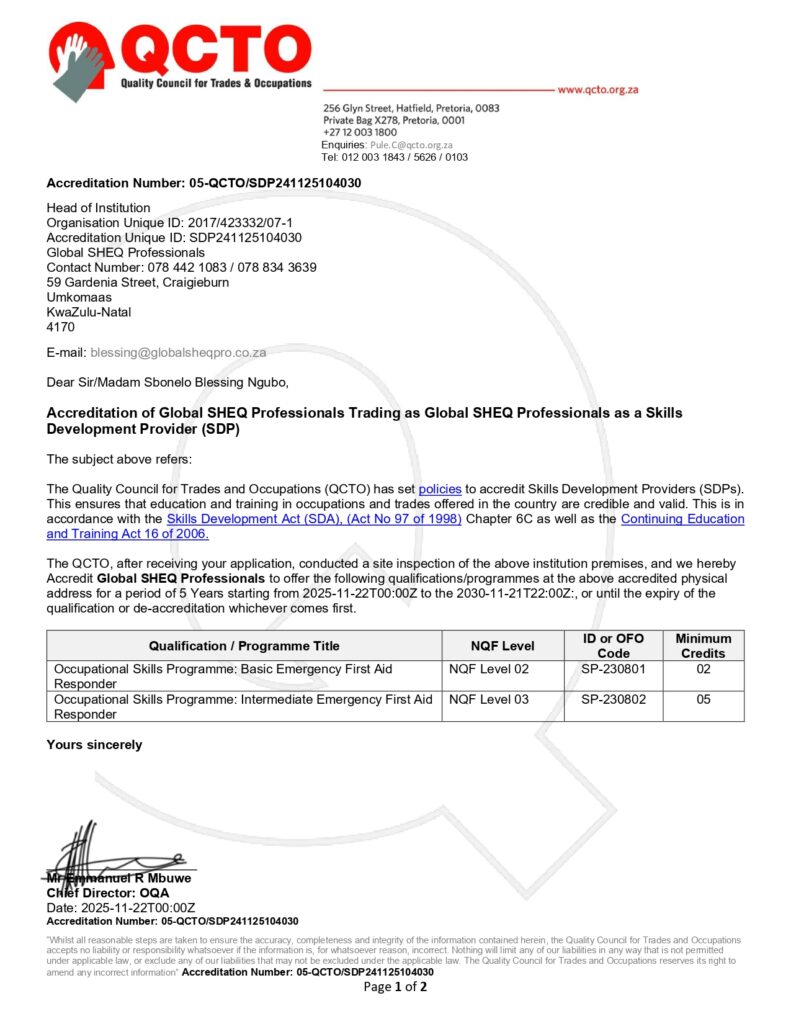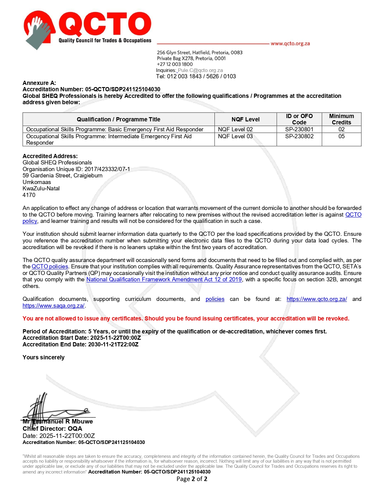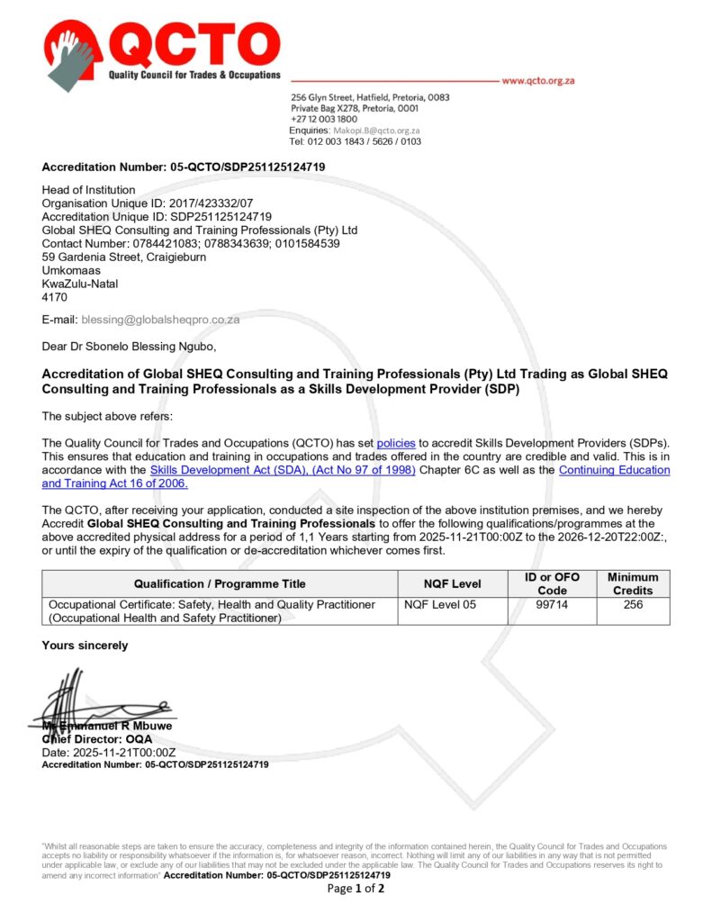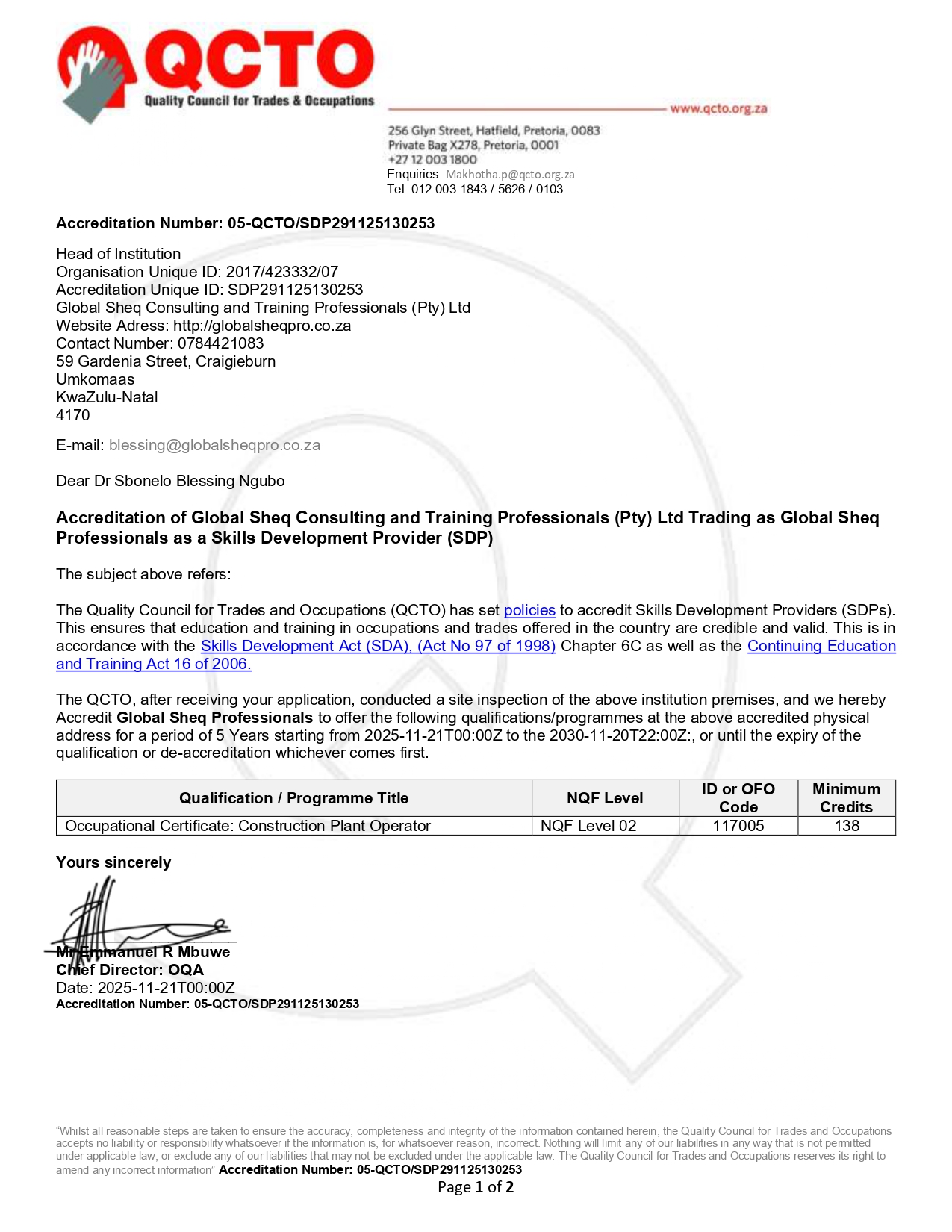 Our comprehensive range of courses includes short courses ranging from 1 day to 2 years. we have soft skills and technical skills. We offer our courses through classroom-based learning and interactive online learning via our approved online learner management system. We offer more than 70 courses, accredited by QCTO, and SAIOSH and 30 non-accredited or non credit bearing course but which assist with knowledge and awareness and industry recommended.